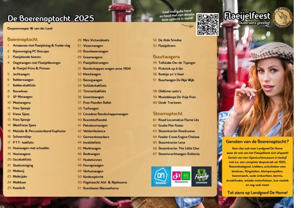 En daar gaan ze, alle deelnemers aan de Boerenoptocht. Eén voor één, genummerd en precies op de afgesproken volgorde. De deelnemers en bezitters van antieke wagens, motoren, trekkers en stoommachines komen uit het hele land. Veel van de wagens zijn ook in het bezit van de Flaeijelfeest stichting zelf.